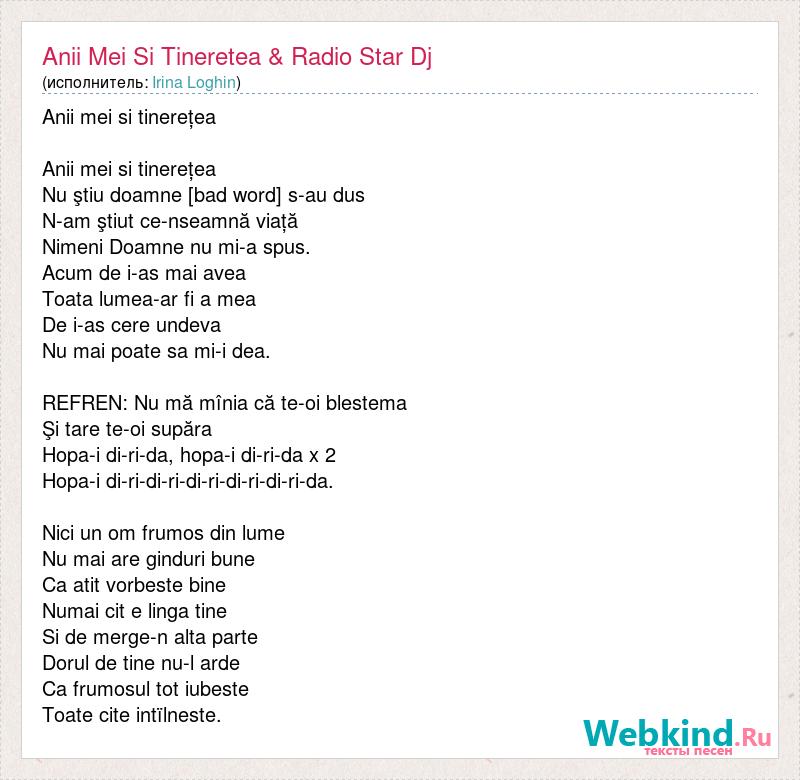 А как ты думаешь, о чем песня "Anii Mei Si Tineretea & Radio Star Dj" ?