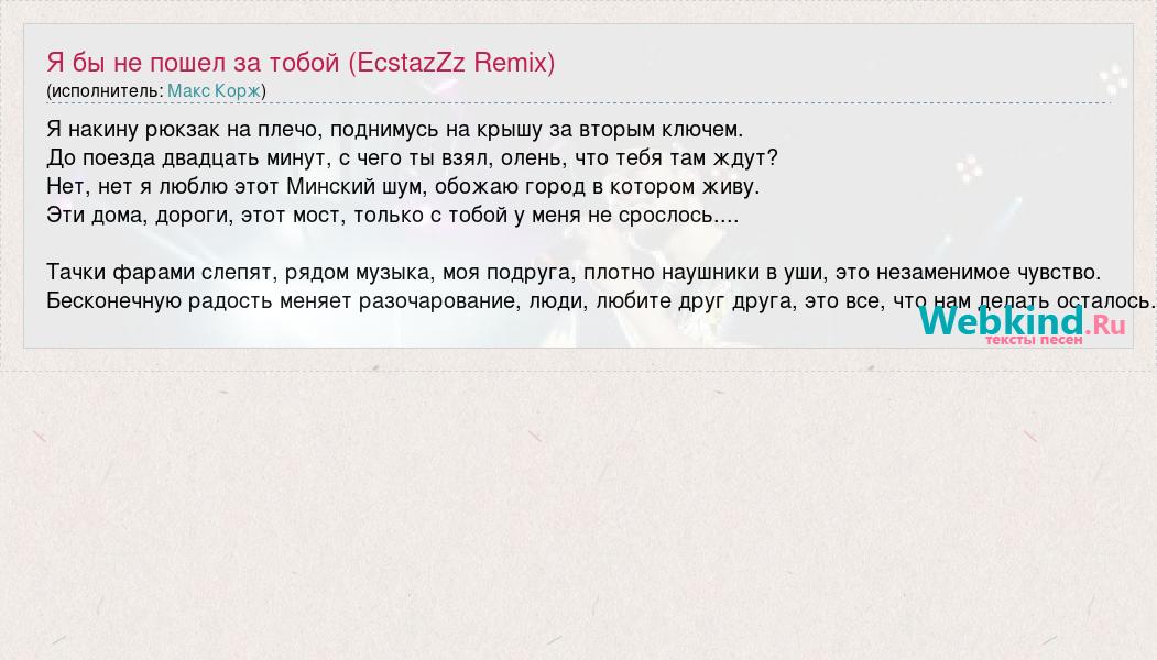 А как ты думаешь, о чем песня "Я бы не пошел за тобой (EcstazZz Remix)" ?