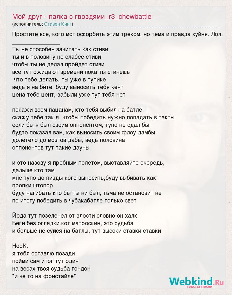 А как ты думаешь, о чем песня "Мой друг - палка с гвоздями_r3_chewbattle" ?