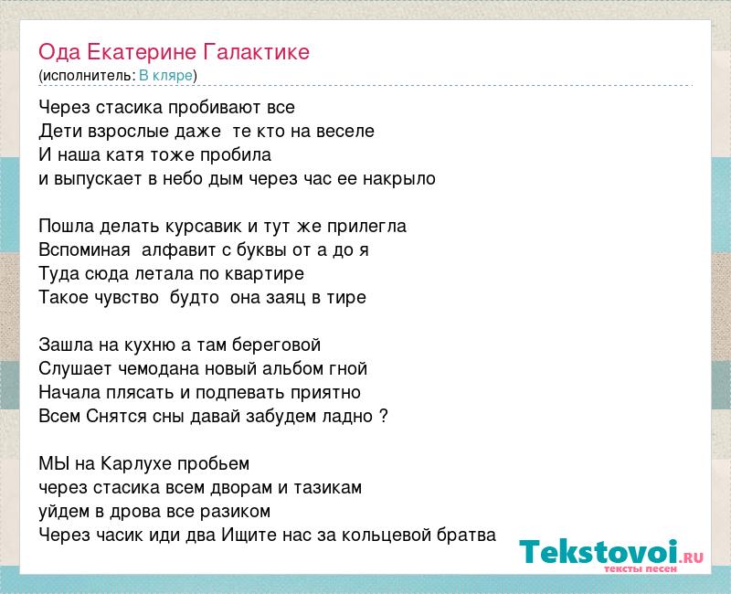 А как ты думаешь, о чем песня "Ода Екатерине Галактике" ?