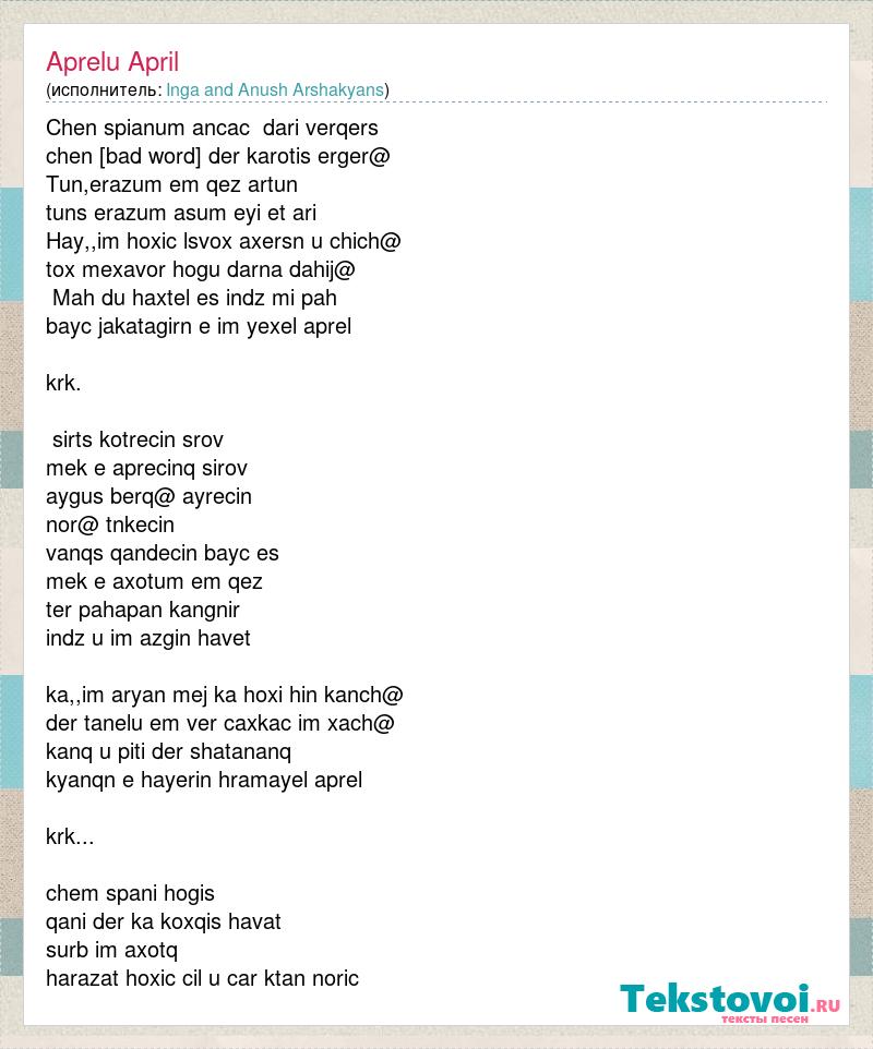 А как ты думаешь, о чем песня "Aprelu April" ?