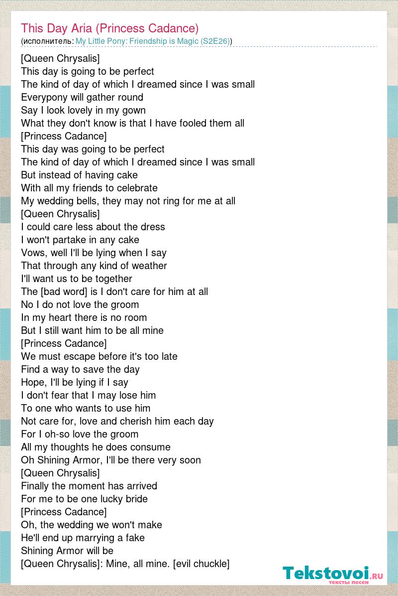 А как ты думаешь, о чем песня "This Day Aria (Princess Cadance)" ?
