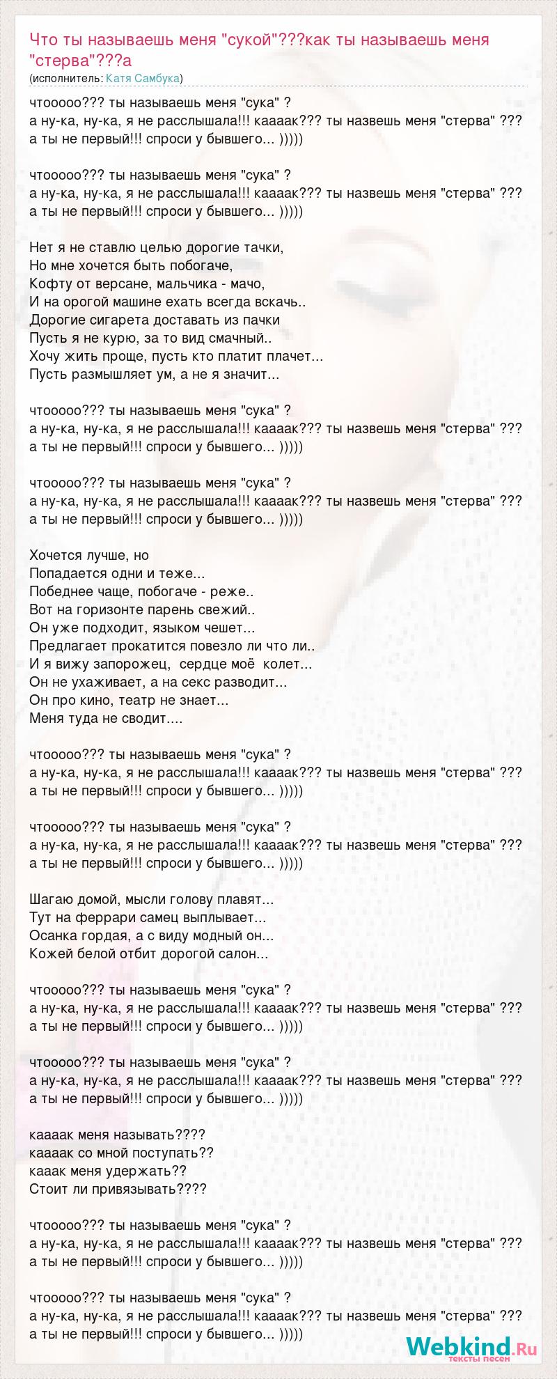 Главная→Исполнители→Катя Самбука→Что ты называешь меня "сукой"???как ты называешь меня "стерва"???а ты не первый,