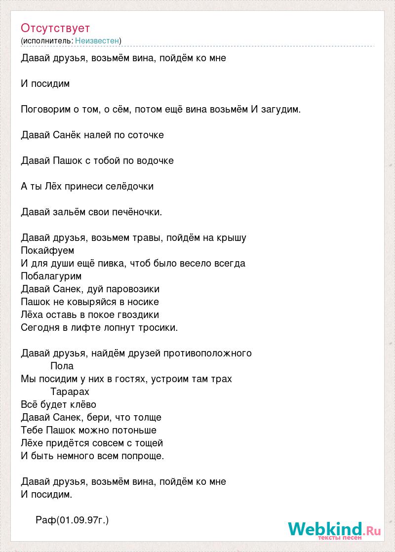 Поговорим о том, о сём, потом ещё вина возьмём И загудим.
