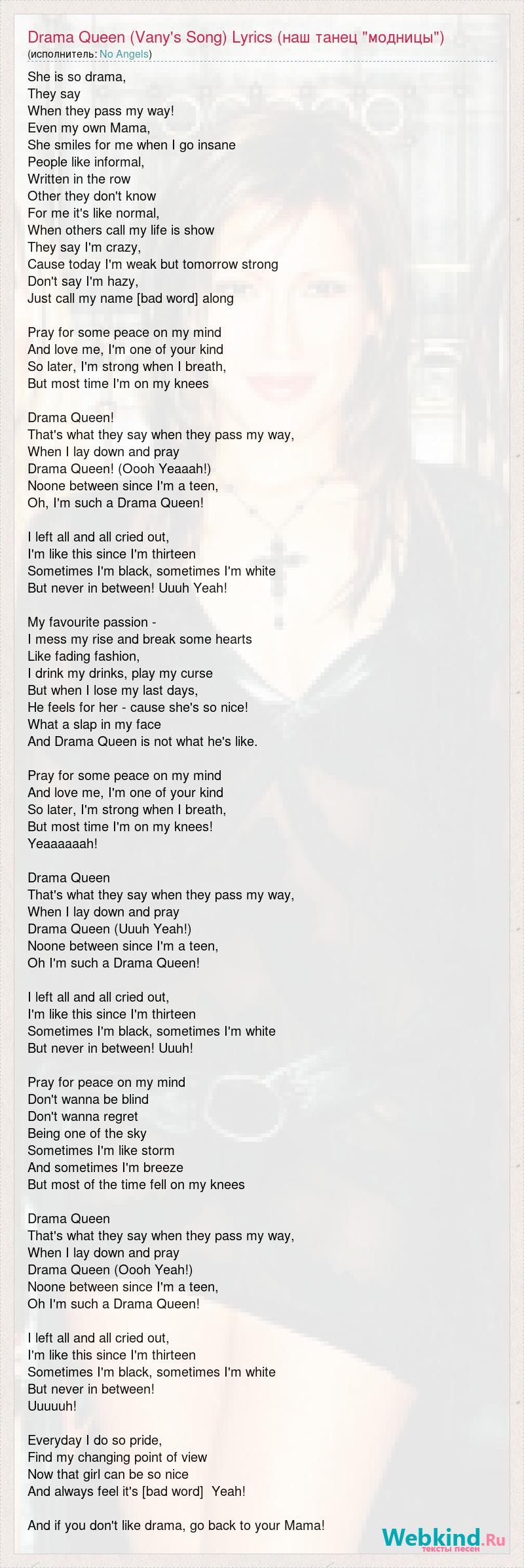 Drama Queen (Vany's Song) Lyrics (наш танец "модницы")