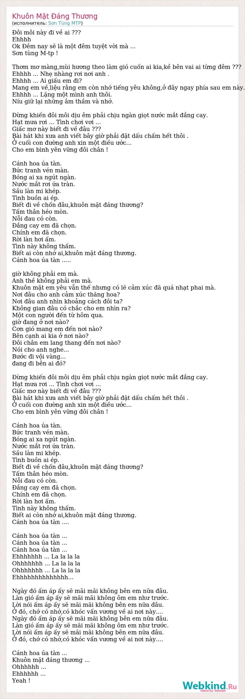 А как ты думаешь, о чем песня "Khuôn Mặt Đáng Thương" ?