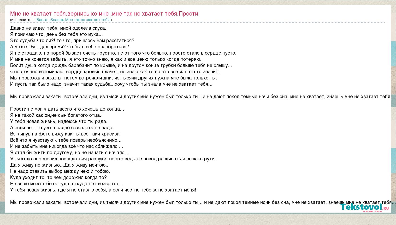 Главная→Исполнители→Баста - Знаешь,Мне так не хватает тебя|→Мне не хватает тебя.вернись ко мне ,мне так не хватает тебя.Прости мен