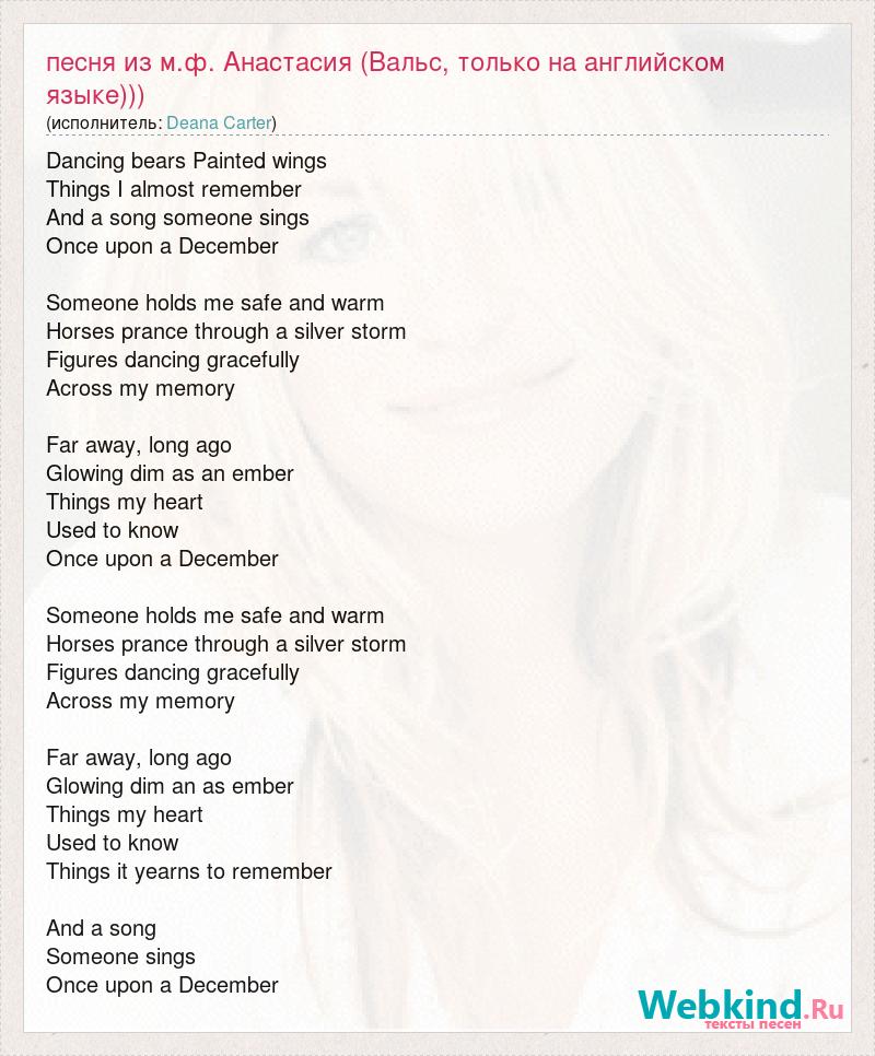 Главная→Исполнители→Deana Carter→Песня из м.ф. Анастасия (Вальс, только на английском языке))) мне даже б
