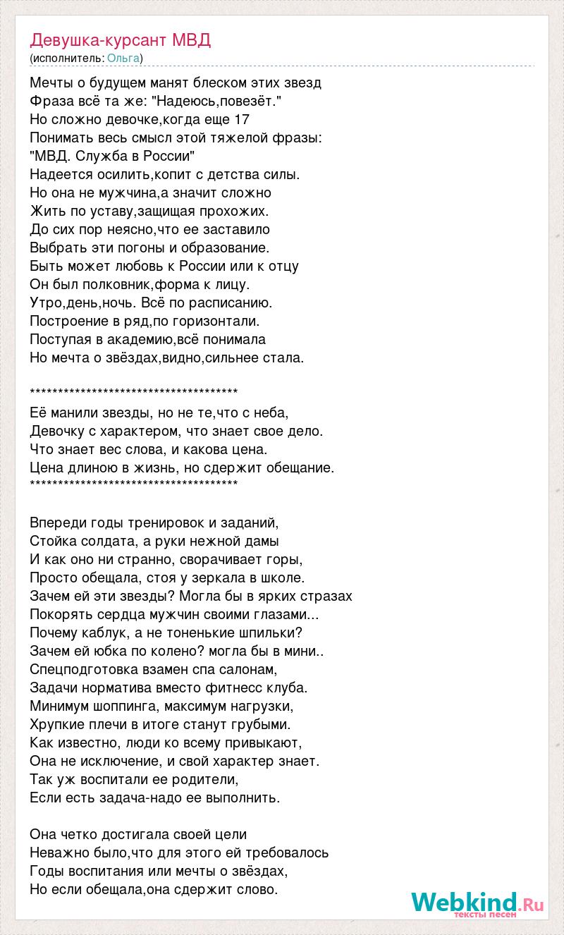 А как ты думаешь, о чем песня "Девушка-курсант МВД" ?