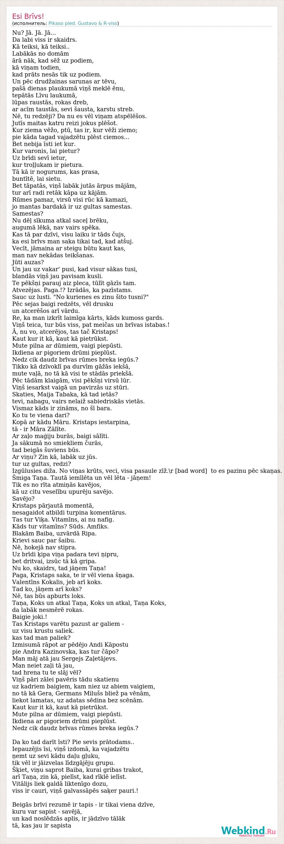 А как ты думаешь, о чем песня "Esi Brīvs!" ?