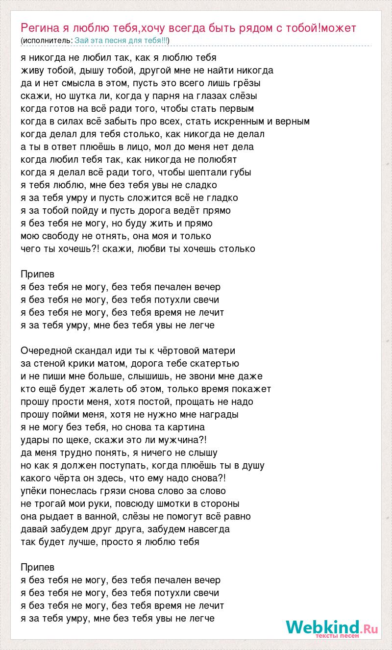 Главная→Исполнители→Зай эта песня для тебя!!!→Регина я люблю тебя,хочу всегда быть рядом с тобой!может ты мне не веришь,но