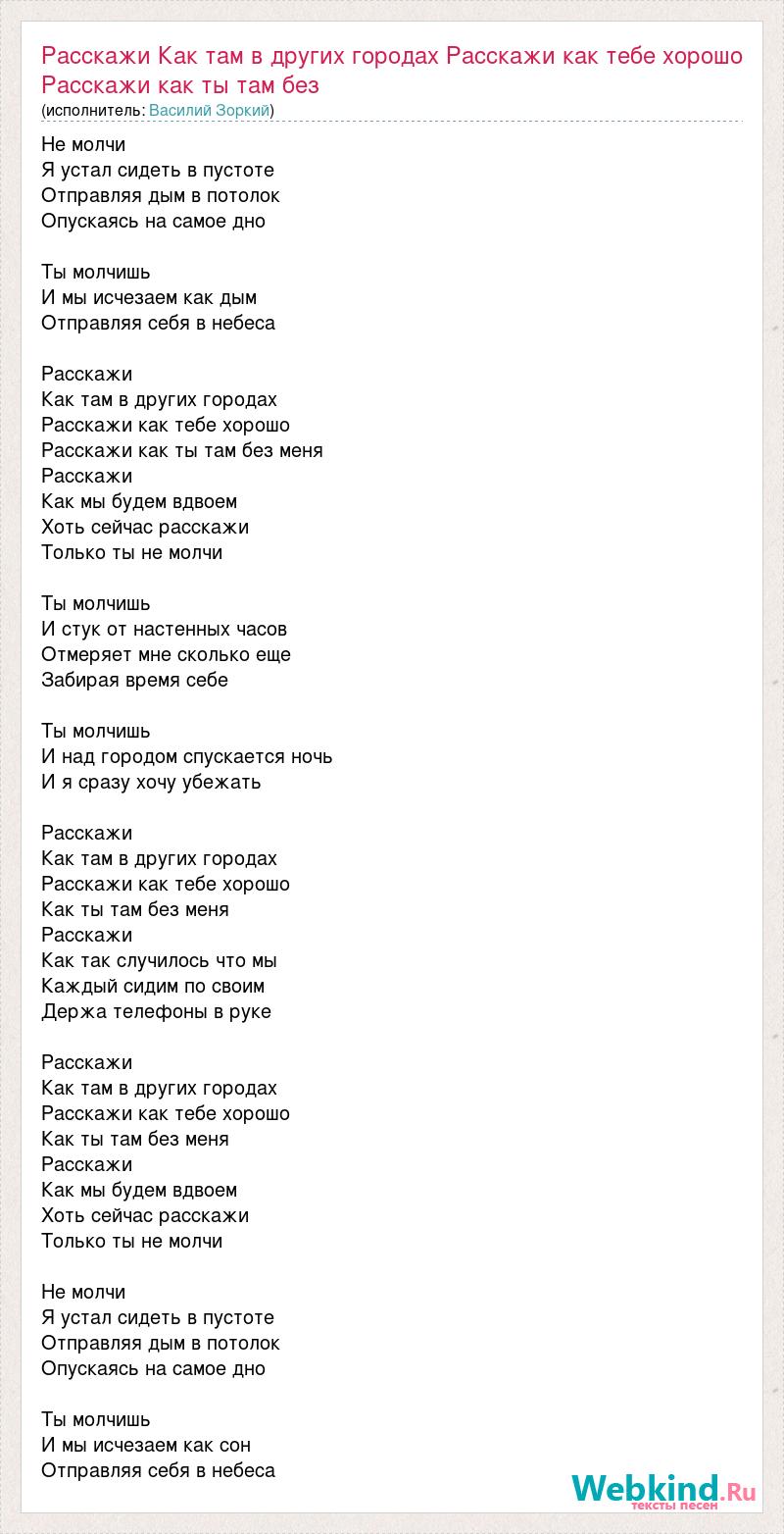 Главная→Исполнители→Василий Зоркий→Расскажи Как там в других городах Расскажи как тебе хорошо Расскажи как ты там