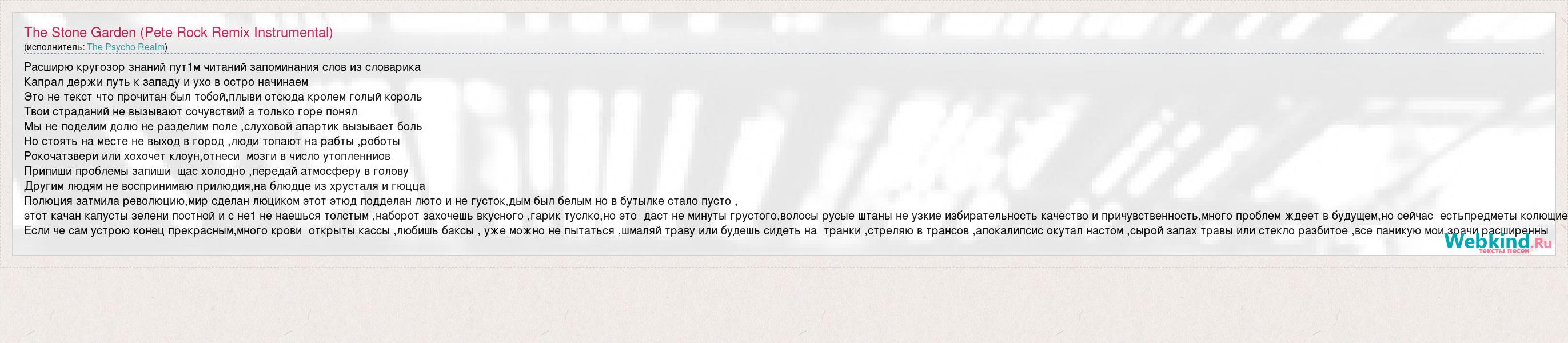 А как ты думаешь, о чем песня "The Stone Garden (Pete Rock Remix Instrumental)" ?