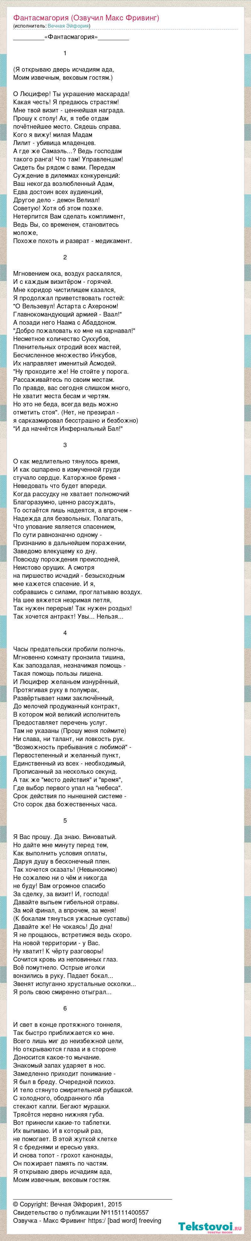 А как ты думаешь, о чем песня "Фантасмагория (Озвучил Макс Фривинг)" ?