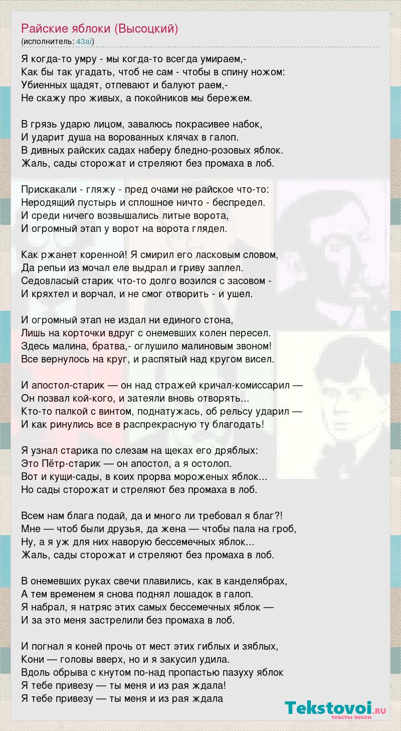А как ты думаешь, о чем песня "Райские яблоки (Высоцкий)" ?