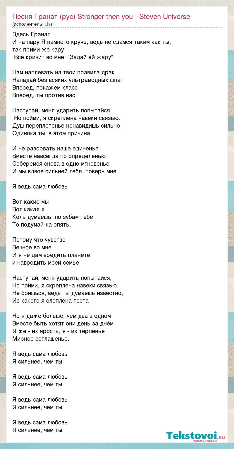 Песня Гранат (рус) Stronger then you - Steven Universe