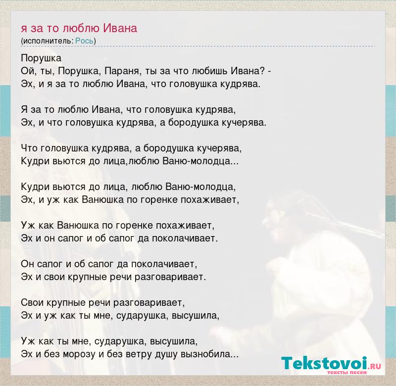 А как ты думаешь, о чем песня "Я за то люблю Ивана" ?