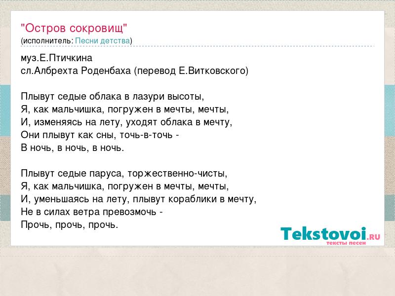 А как ты думаешь, о чем песня ""Остров сокровищ"" ?