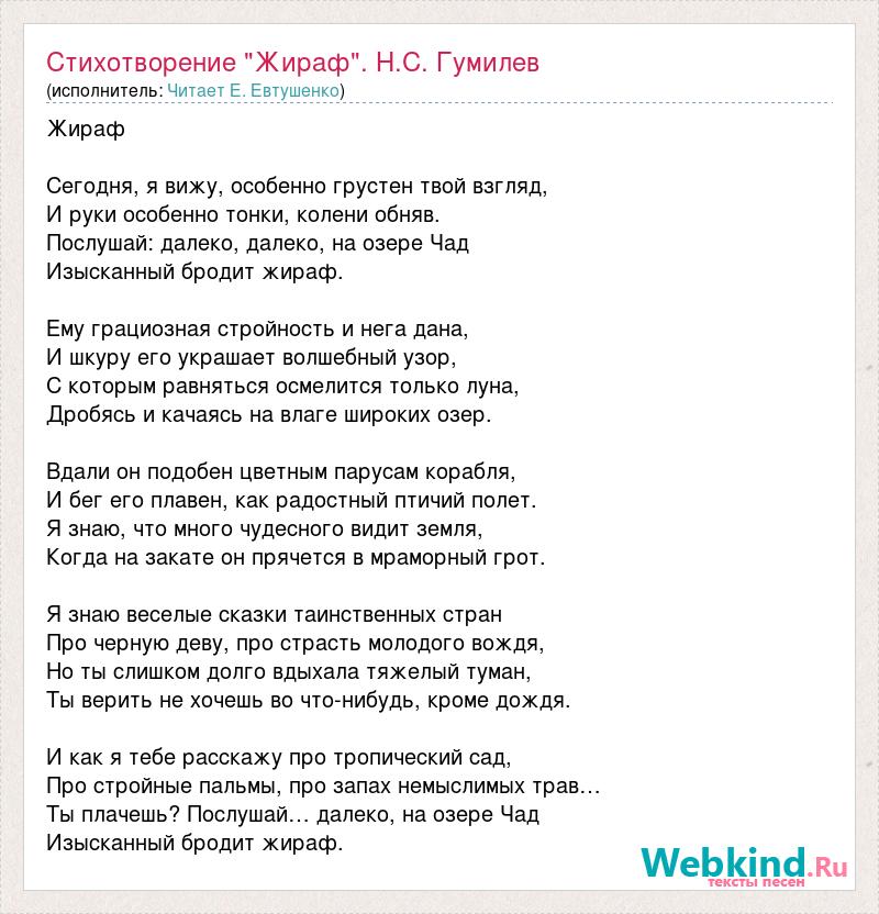 А как ты думаешь, о чем песня "Стихотворение "Жираф". Н.С. Гумилев" ?