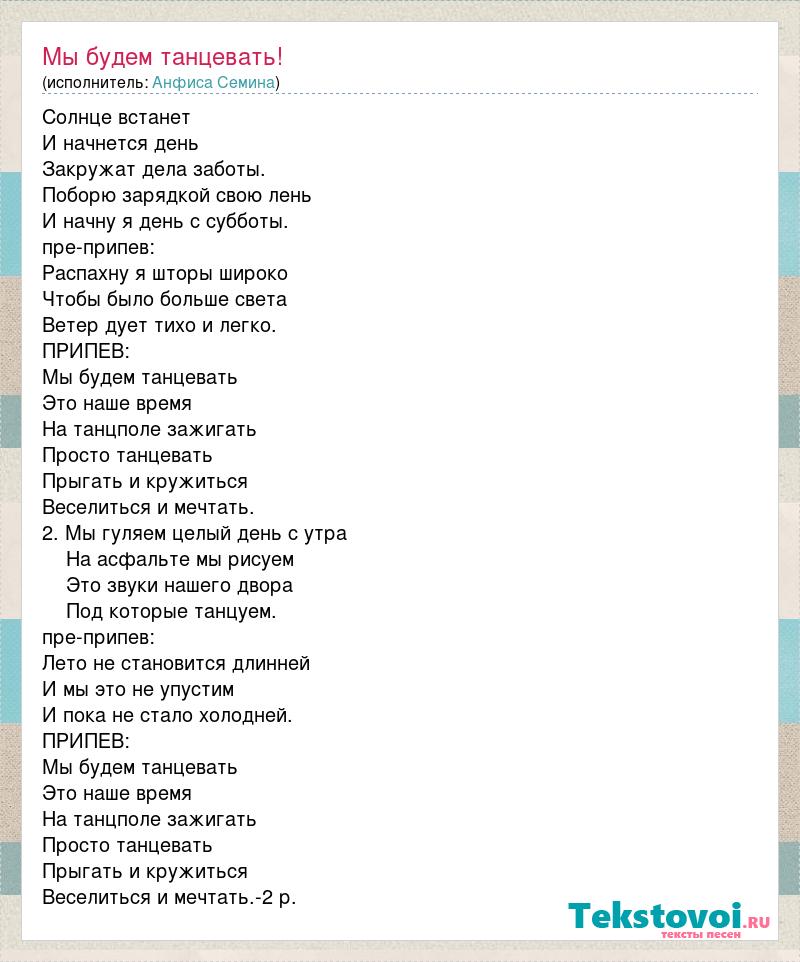 А как ты думаешь, о чем песня "Мы будем танцевать!" ?