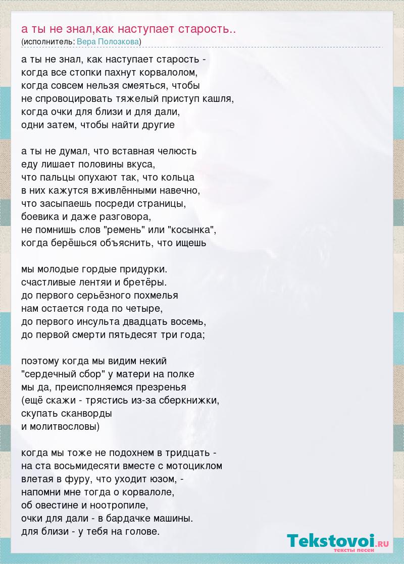 А как ты думаешь, о чем песня "А ты не знал,как наступает старость.." ?