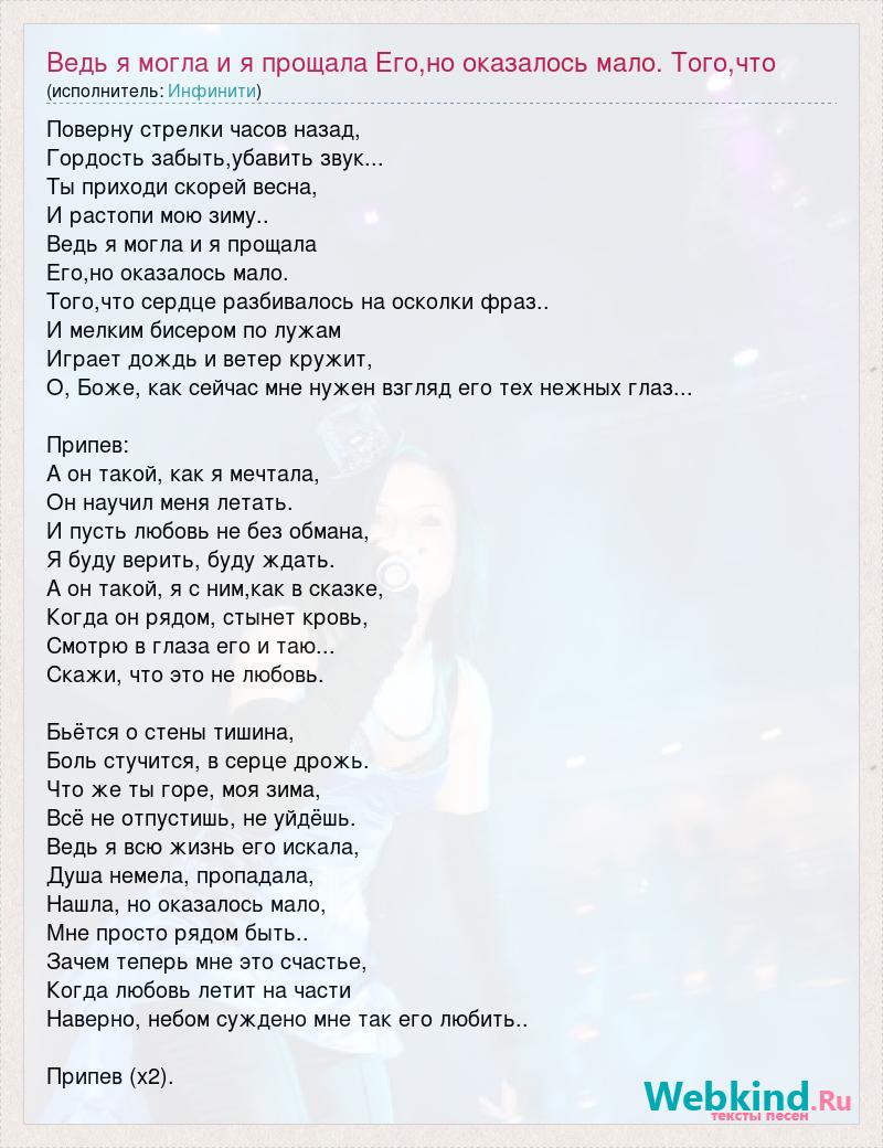 Главная→Исполнители→Инфинити→Ведь я могла и я прощала Его,но оказалось мало. Того,что сердце разбивалос