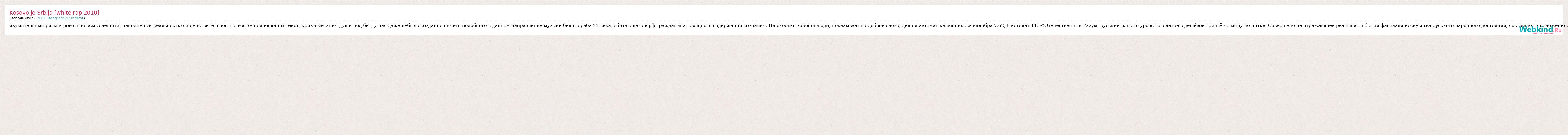 А как ты думаешь, о чем песня "Kosovo je Srbija [white rap 2010]" ?