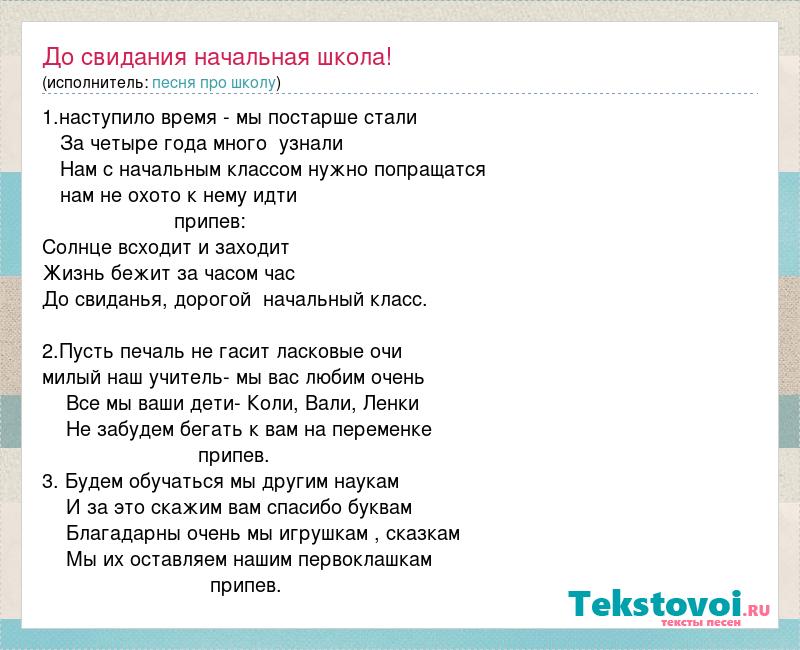 А как ты думаешь, о чем песня "До свидания начальная школа!" ?