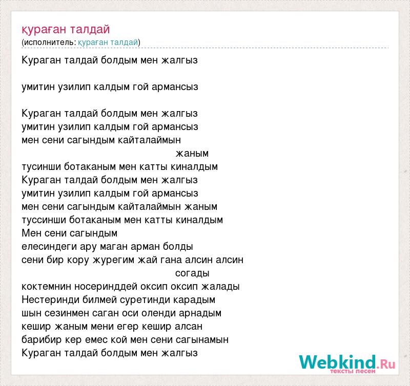 А как ты думаешь, о чем песня "Қураған талдай" ?