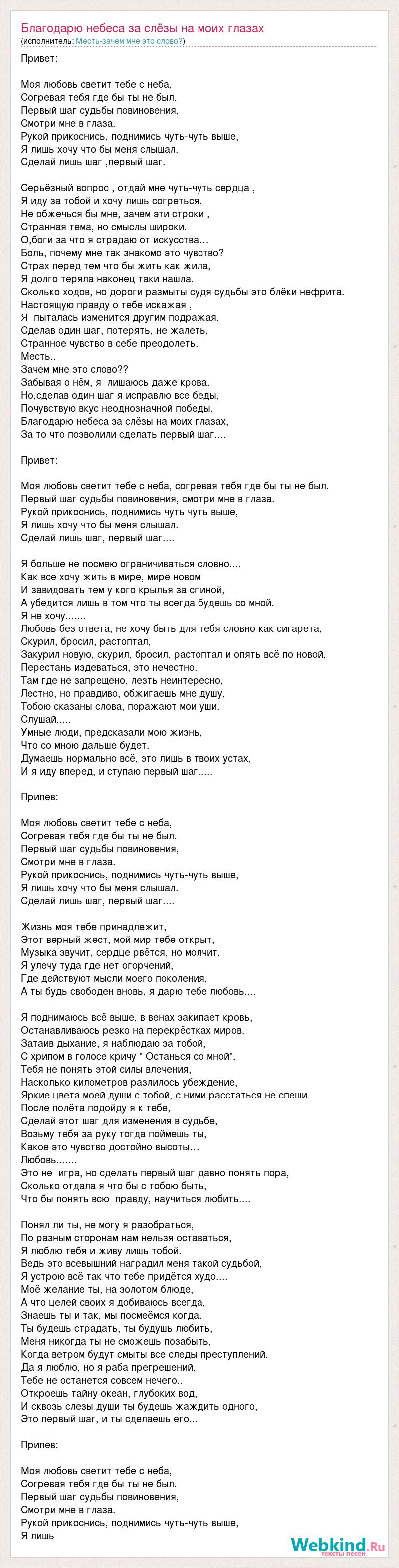 А как ты думаешь, о чем песня "Благодарю небеса за слёзы на моих глазах" ?