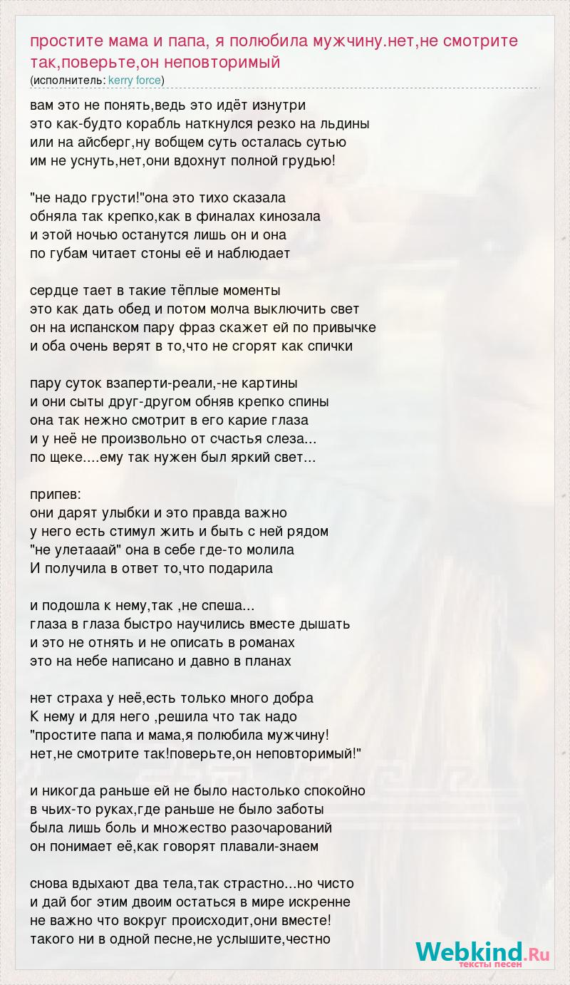 Главная→Исполнители→Kerry Force→Простите мама и папа, я полюбила мужчину.нет,не смотрите так,поверьте,он неповто