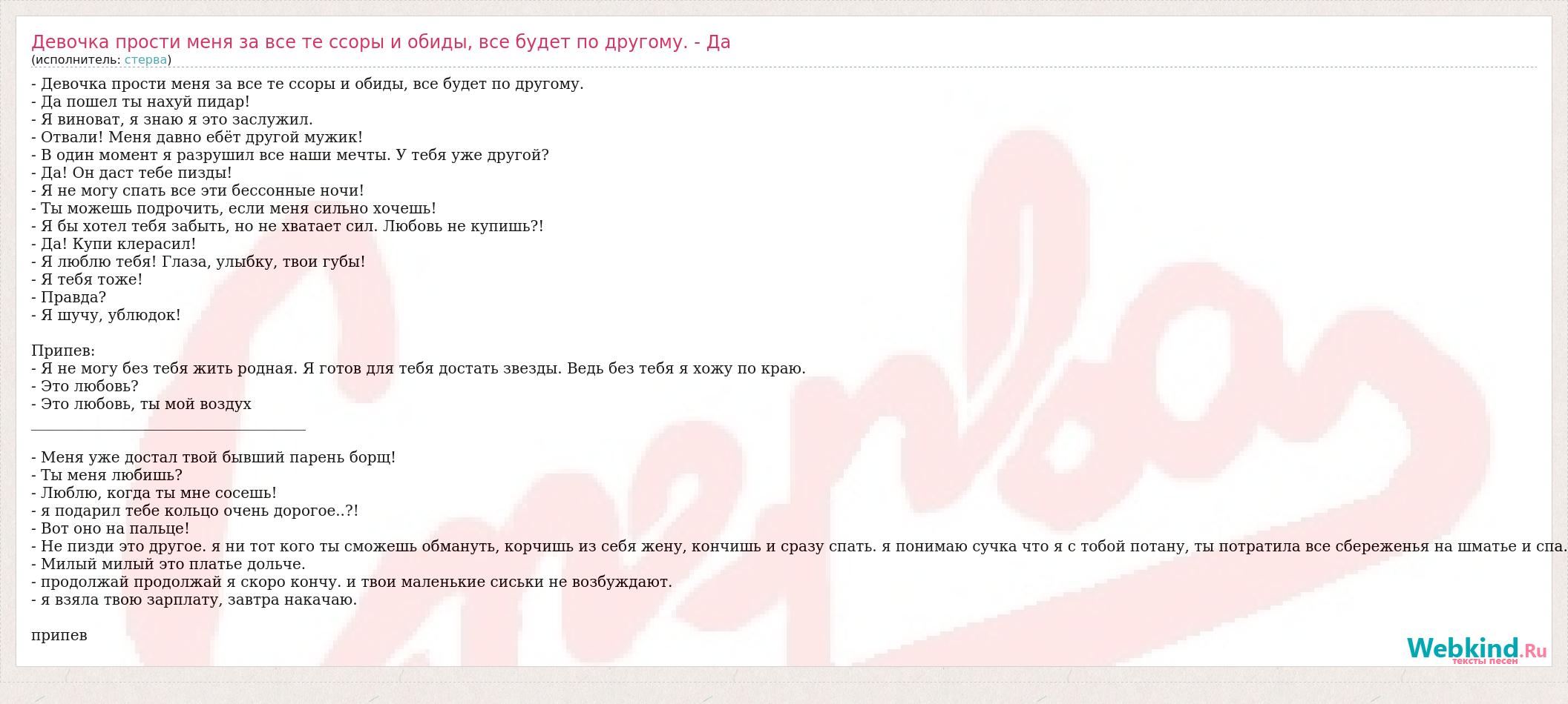 А как ты думаешь, о чем песня "Девочка прости меня за все те ссоры и обиды, все будет по другому. - Да" ?