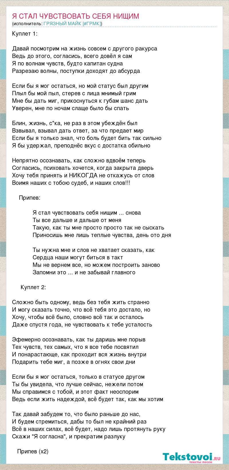 А как ты думаешь, о чем песня "Я СТАЛ ЧУВСТВОВАТЬ СЕБЯ НИЩИМ" ?