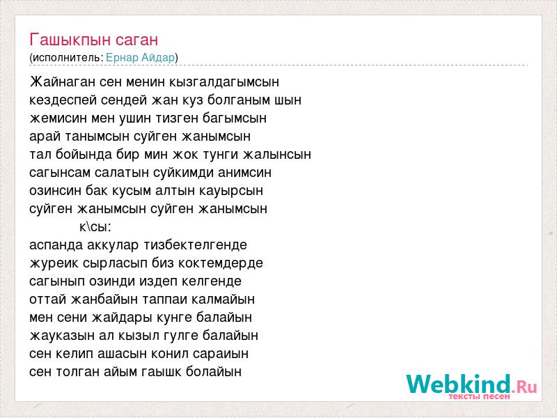 А как ты думаешь, о чем песня "Гашыкпын саган" ?