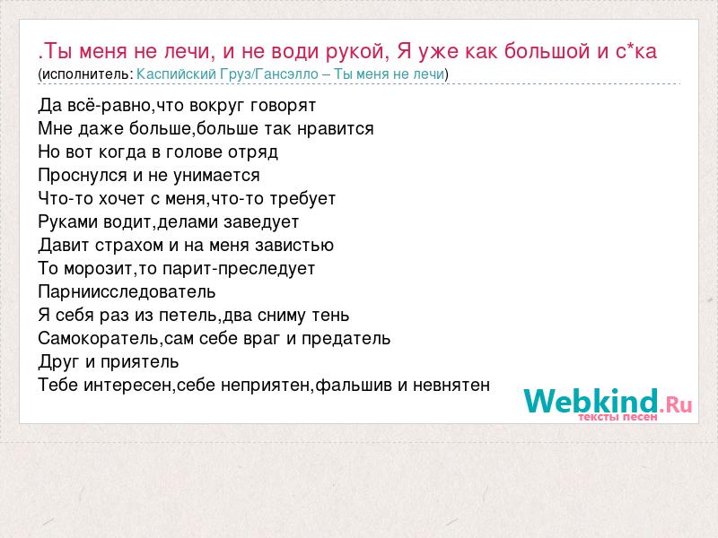 Главная→Исполнители→Каспийский Груз/Гансэлло – Ты меня не лечи→.Ты меня не лечи, и не води рукой, Я уже как большой и с*ка сам