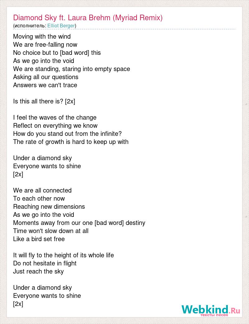 А как ты думаешь, о чем песня "Diamond Sky ft. Laura Brehm (Myriad Remix)" ?