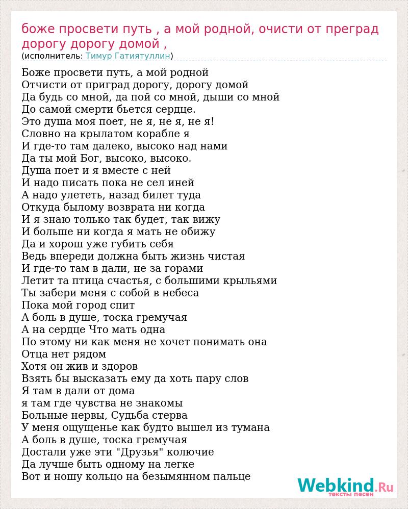 Главная→Исполнители→Тимур Гатиятуллин→Боже просвети путь , а мой родной, очисти от преград дорогу дорогу домой