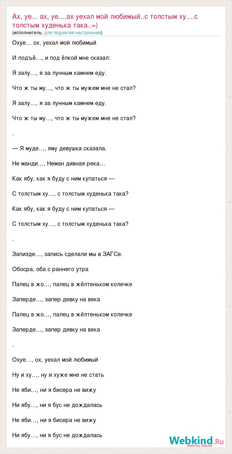 Ах, уе... ах, уе....ах уехал мой любимый..с толстым ху....с толстым худенька так
