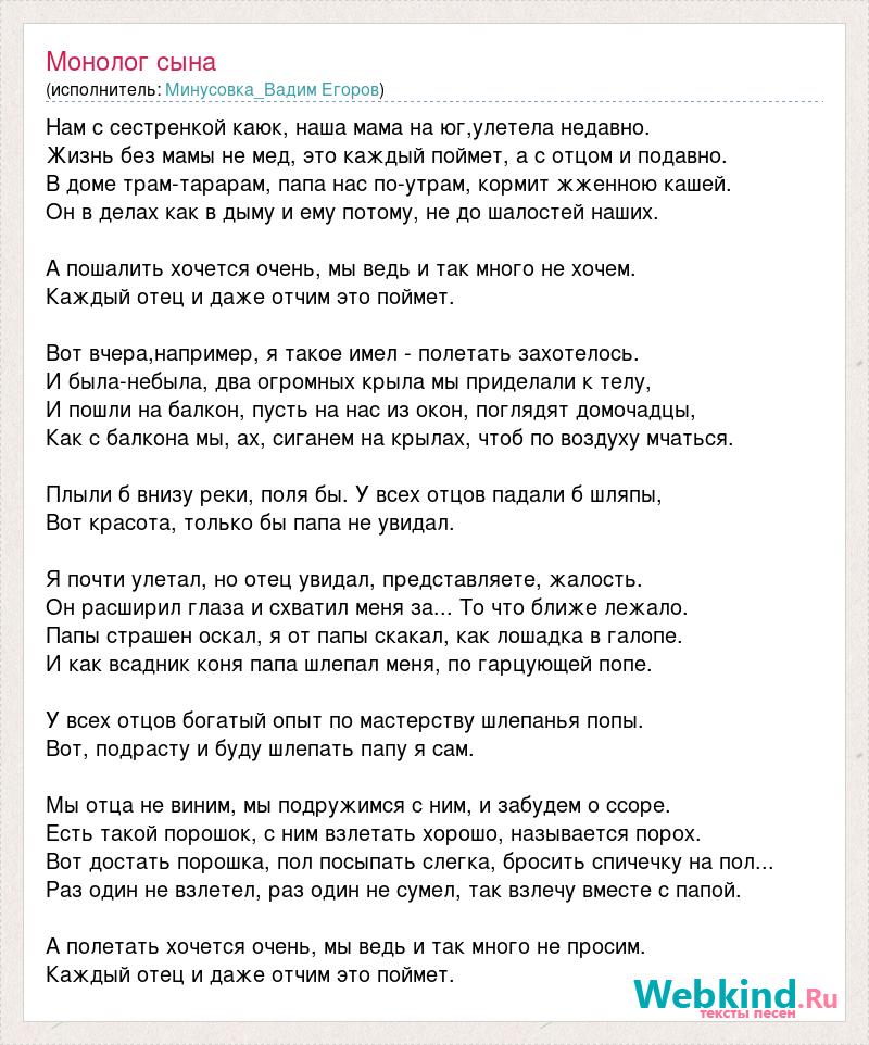 А как ты думаешь, о чем песня "Монолог сына" ?
