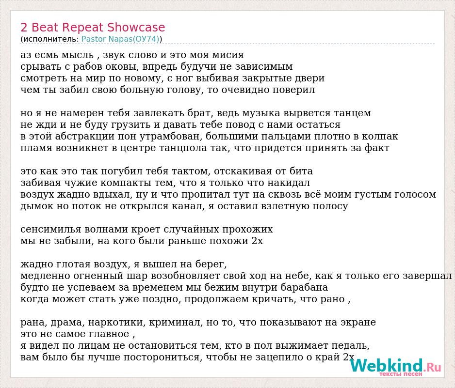 А как ты думаешь, о чем песня "2 Beat Repeat Showcase" ?