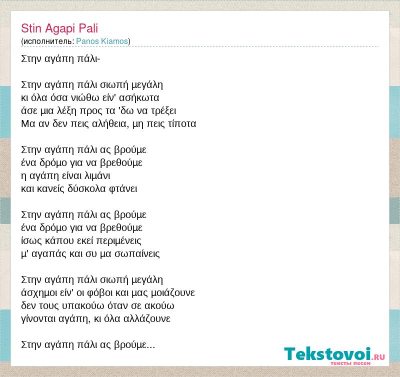 А как ты думаешь, о чем песня "Stin Agapi Pali" ?