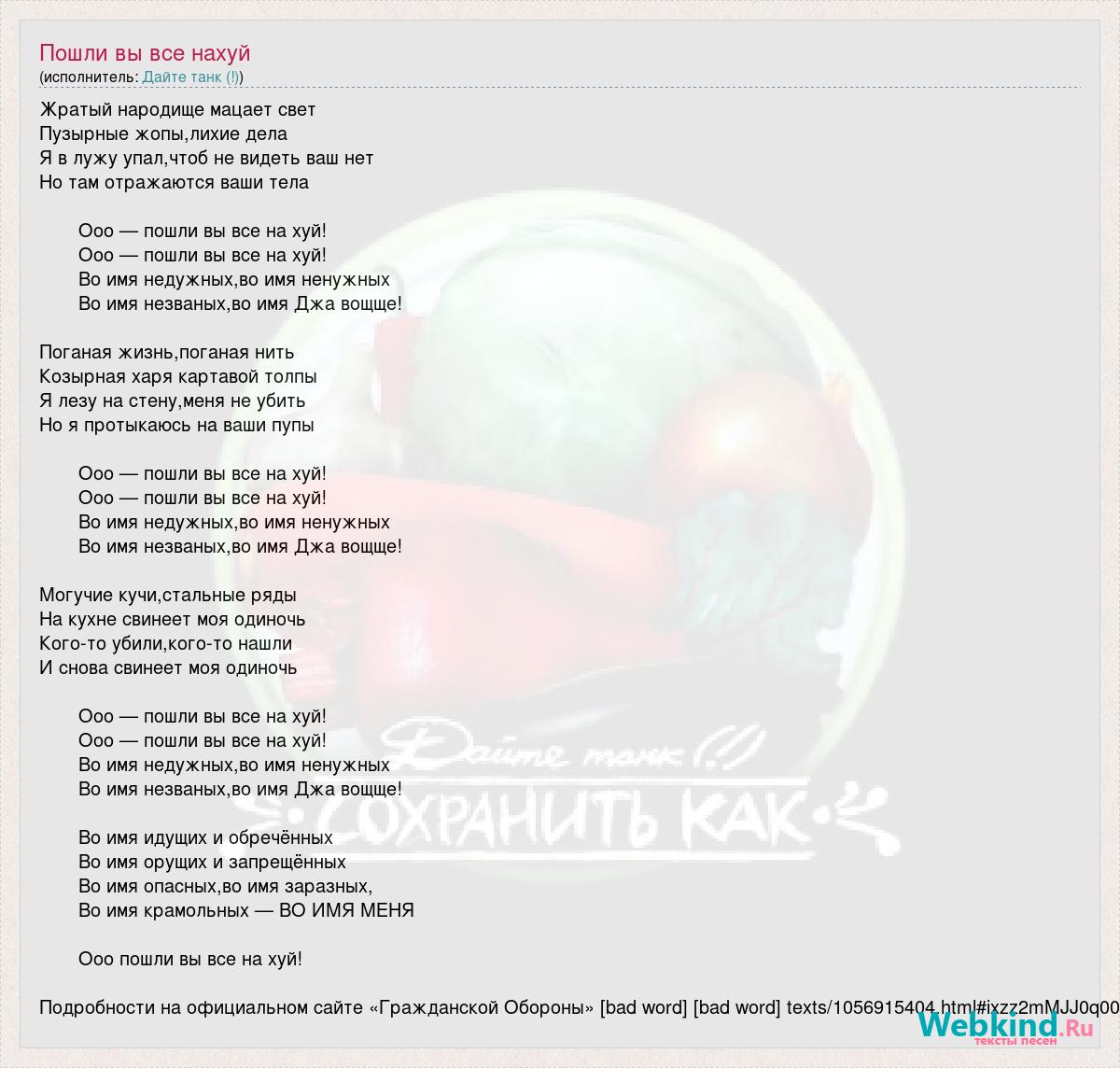 А как ты думаешь, о чем песня "Пошли вы все нахуй" ?