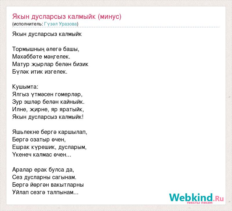 А как ты думаешь, о чем песня "Якын дусларсыз калмыйк (минус)" ?