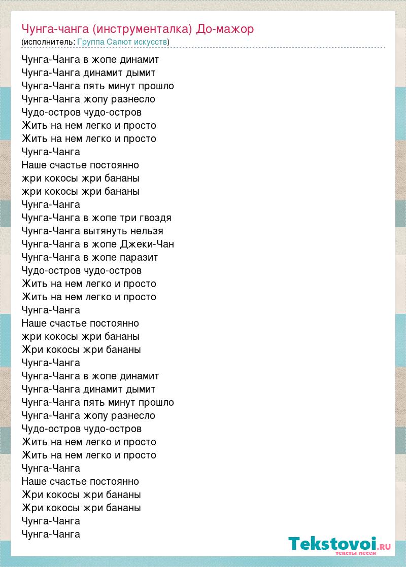 Чунга-Чанга в жопе динамит Чунга-Чанга динамит дымит Чунга-Чанга пять минут прошло Чунга-Чанга жопу разнесло Чудо-остров чудо-остров Жить на нем легко и просто Жить на нем легко и просто Чунга-Чанга Наше счастье постоянно жри кокосы жри бананы жри кокосы жри бананы Чунга-Чанга Чунга-Чанга в жопе три гвоздя Чунга-Чанга вытянуть нельзя Чунга-Чанга в жопе Джеки-Чан Чунга-Чанга в жопе паразит Чудо-остров чудо-остров Жить на нем легко и просто Жить на нем легко и просто Чунга-Чанга Наше счастье постоянно жри кокосы жри бананы Жри кокосы жри бананы Чунга-Чанга Чунга-Чанга в жопе динамит Чунга-Чанга динамит дымит Чунга-Чанга пять минут прошло Чунга-Чанга жопу разнесло Чудо-остров чудо-остров Жить на нем легко и просто Жить на нем легко и просто Чунга-Чанга Наше счастье постоянно Жри кокосы жри бананы Жри кокосы жри бананы Чунга-Чанга Чунга-Чанга