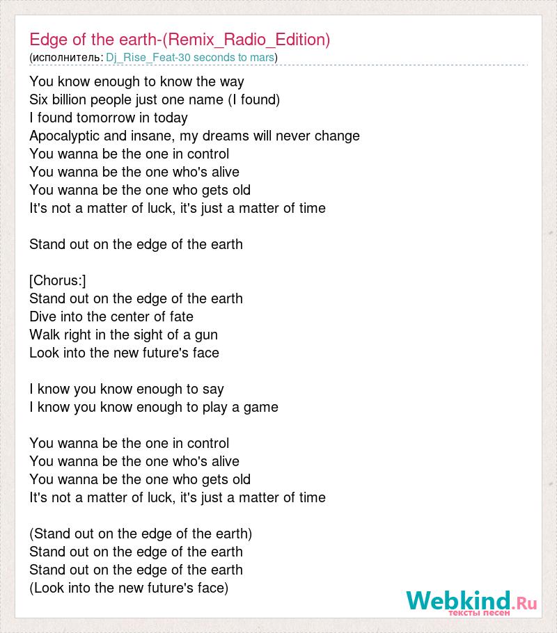 А как ты думаешь, о чем песня "Edge of the earth-(Remix_Radio_Edition)" ?