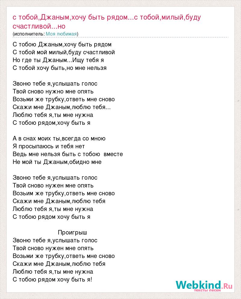 С тобой,Джаным,хочу быть рядом...с тобой,милый,буду счастливой...но где ты ,джан
