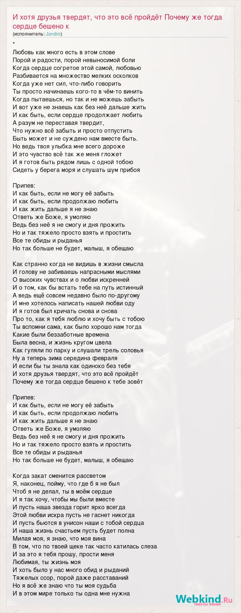И хотя друзья твердят, что это всё пройдёт Почему же тогда сердце бешено к