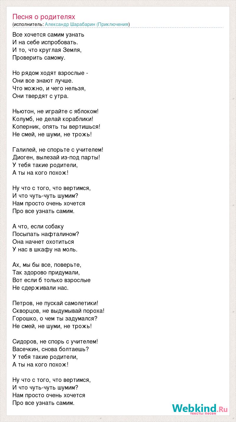 А как ты думаешь, о чем песня "Песня о родителях" ?