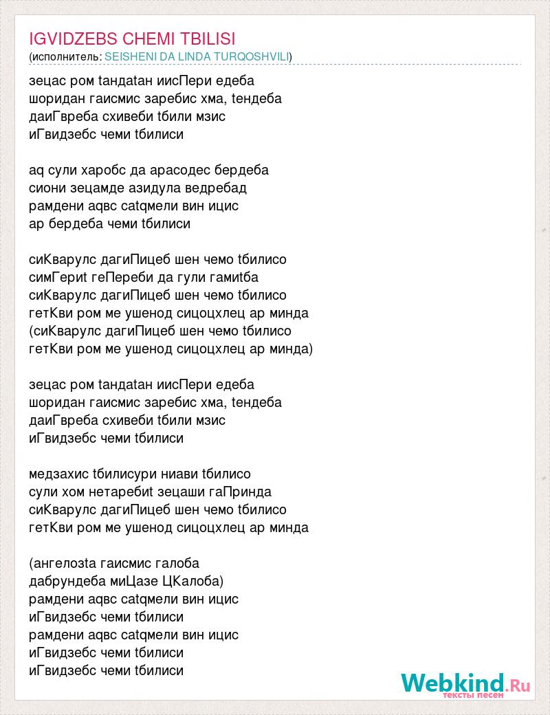 А как ты думаешь, о чем песня "IGVIDZEBS CHEMI TBILISI" ?