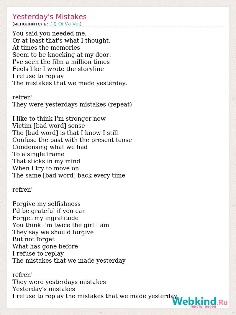 А как ты думаешь, о чем песня "Yesterday's Mistakes" ?